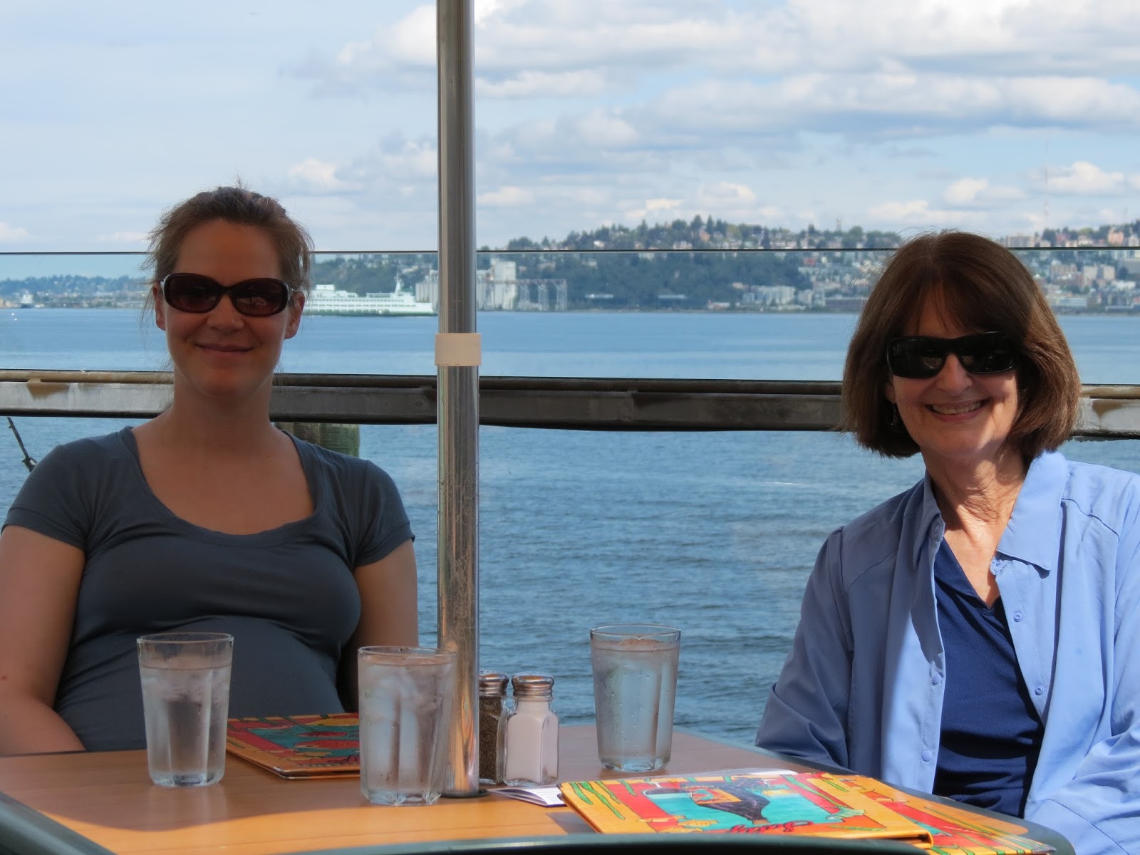 The Baby was late and our daughter wanted to go to her favorite store PCC to stock up. They have two in Seattle and I wanted to go to the one in West Seattle so we could learn about the peninsula that we have a view of from our living room window. It was an unexpected opportunity to eat lunch at Salty's http://saltys.com/seattle .